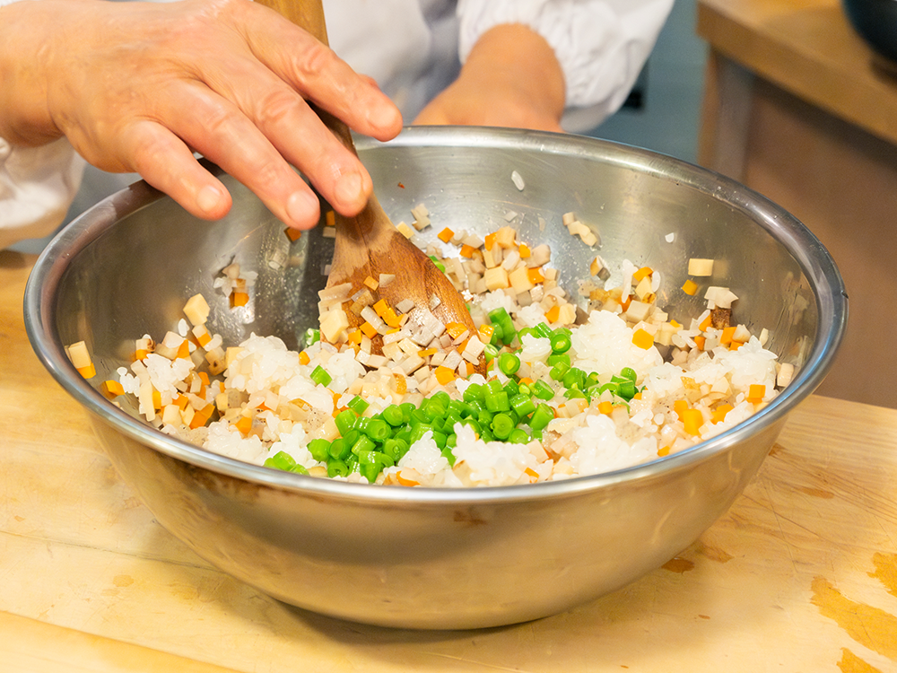 ポイント:すし飯は温かい方が混ざりやすいです。